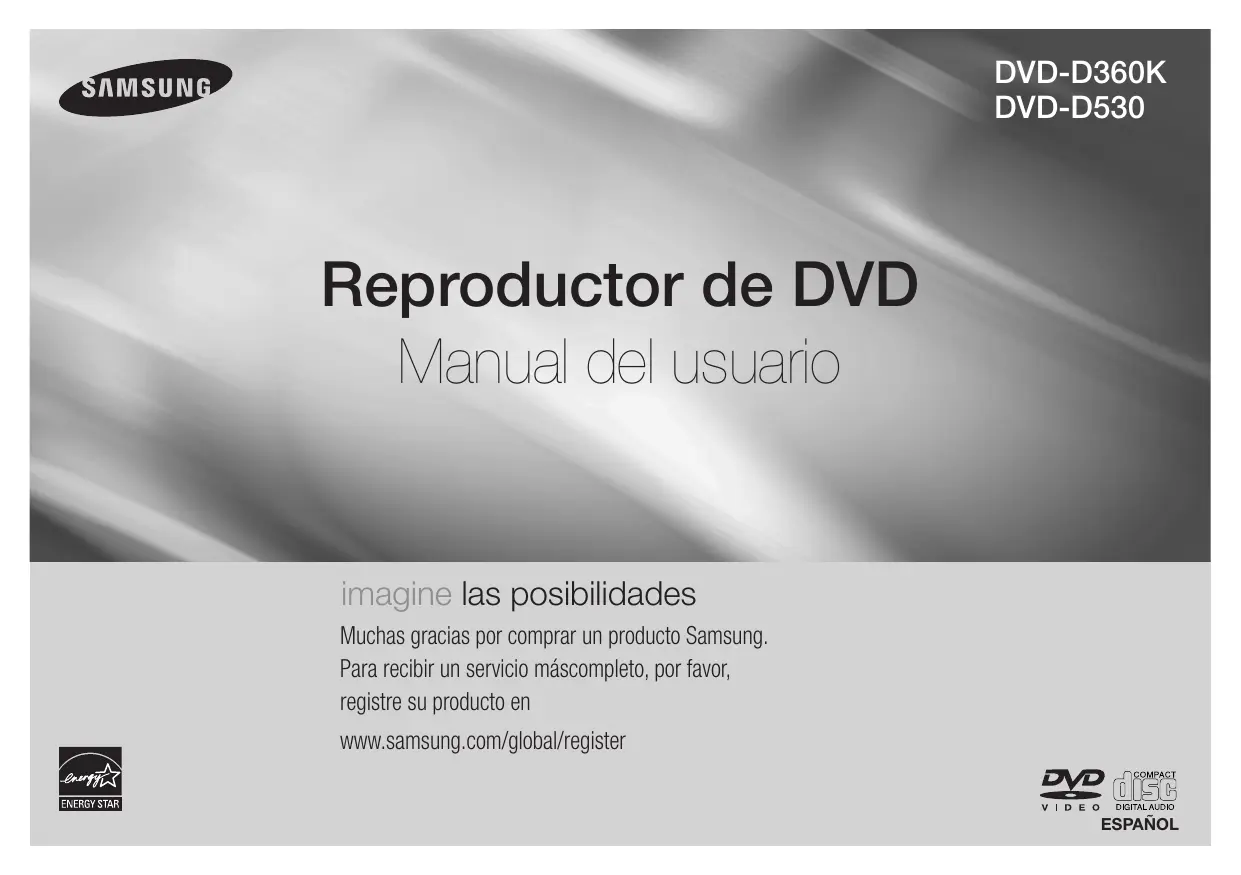 Sussulto output HDMI Reproductor de DVD Manual del usuario imagine las posibilidades Muchas gracias por comprar un producto Samsung. Para recibir un servicio máscompleto, por favor, registre su producto en www.samsung.com/global/register ESPAÑOL Precauciones