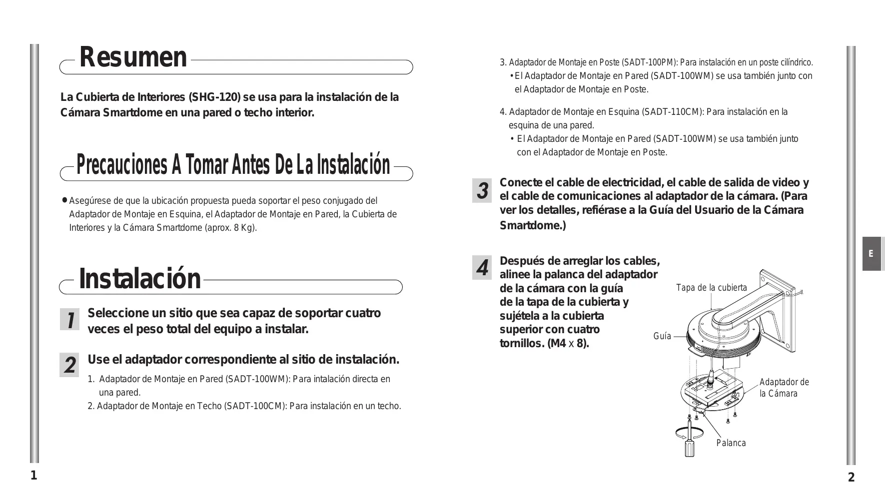 4. Adaptador de Montaje en Esquina (SADT-110CM): Para instalación en la esquina de una pared.