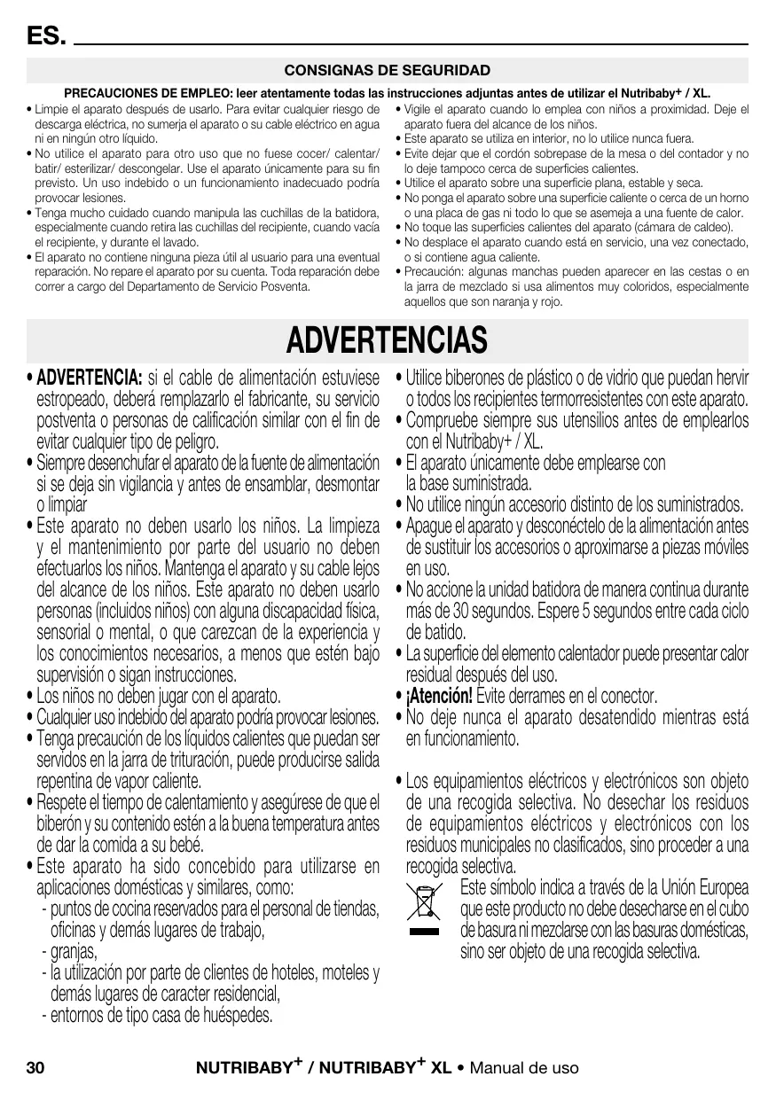 NUTRIBABY+ / NUTRIBABY+ XL • Manual de uso