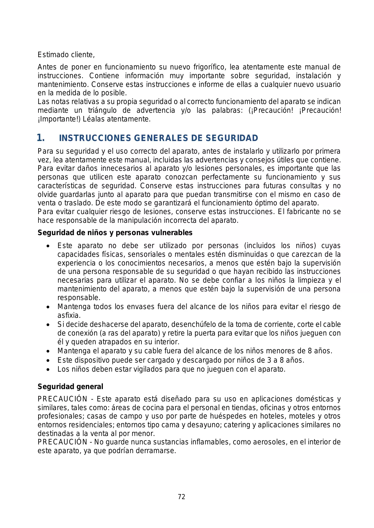 | Mantenimiento y limpieza | Limpieza regular de las superficies interiores y exteriores, descongelación si es necesario |