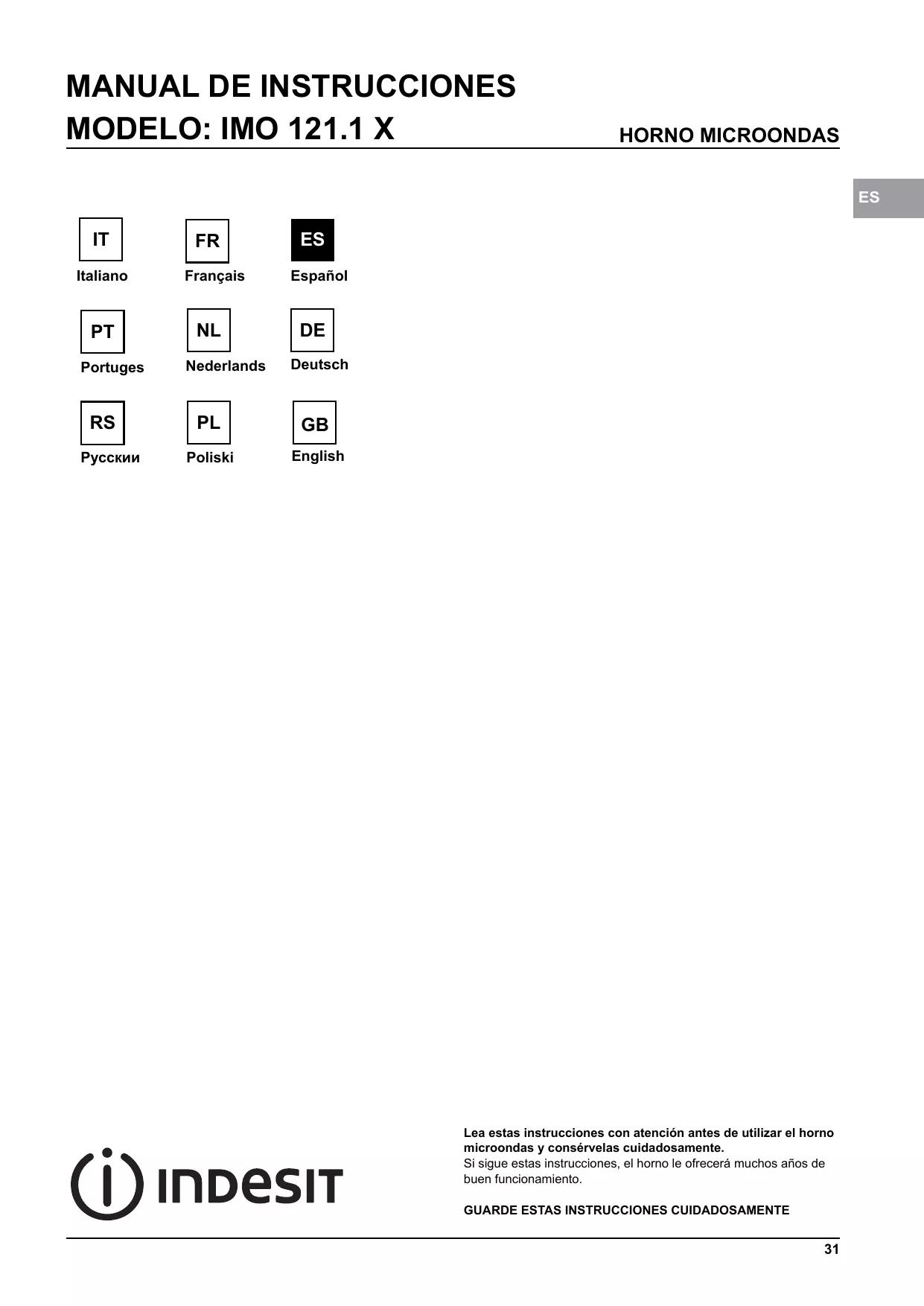 MANUAL DE USUARIO IMO 121.1X INDESIT