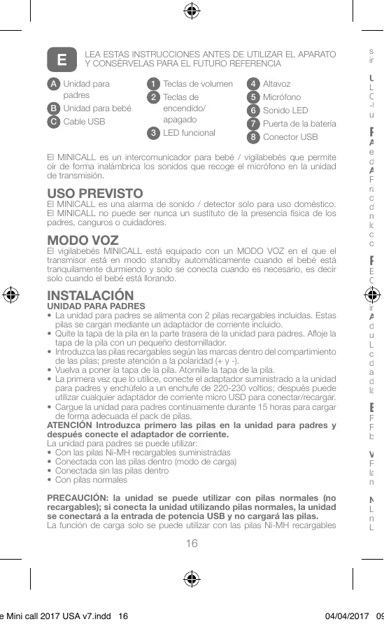 MINICALL - Monitor de bebé BEABA - Manual de uso y guía de instrucciones gratis