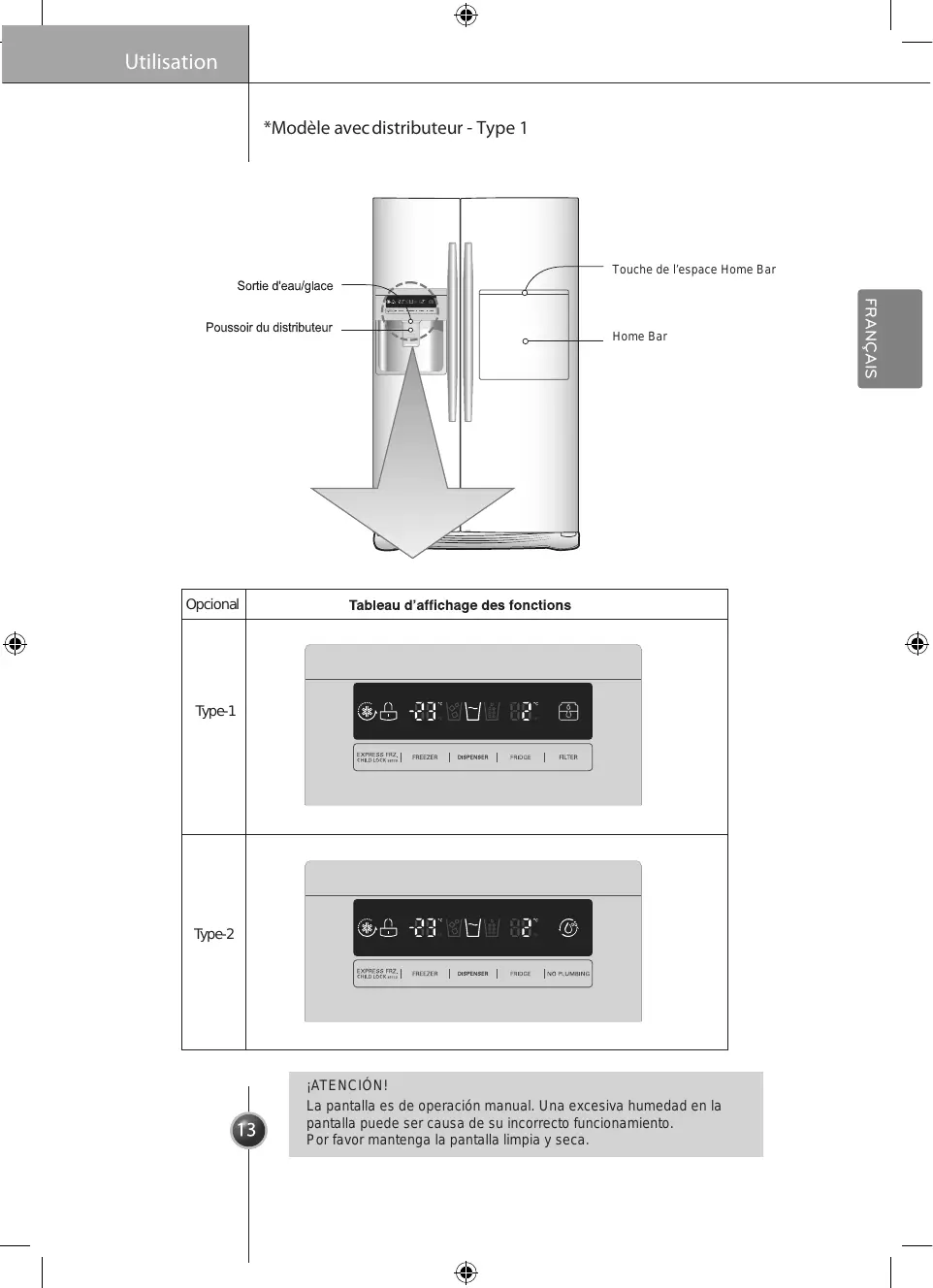 ¡ATENCIÓN! La pantalla es de operación manual. Una excesiva humedad en la pantalla puede ser causa de su incorrecto funcionamiento. Por favor mantenga la pantalla limpia y seca.