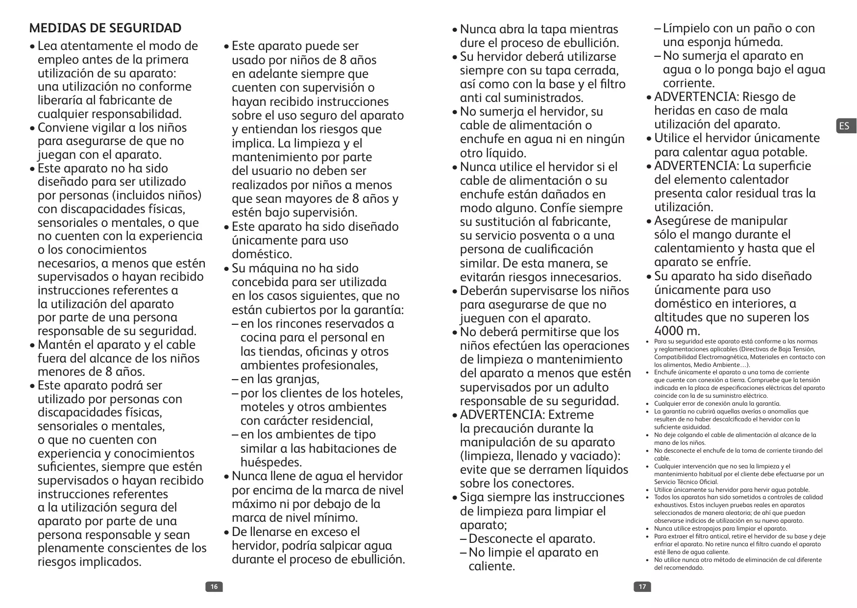 • De llenarse en exceso el hervidor, podría salpicar agua durante el proceso de ebullición. 16
