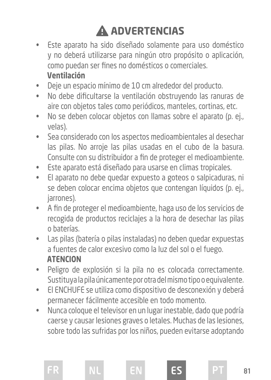 - A fin de proteger el medioambiente, haga uso de los servicios de recogida de productos reciclajes a la hora de desechar las pilas o baterías.