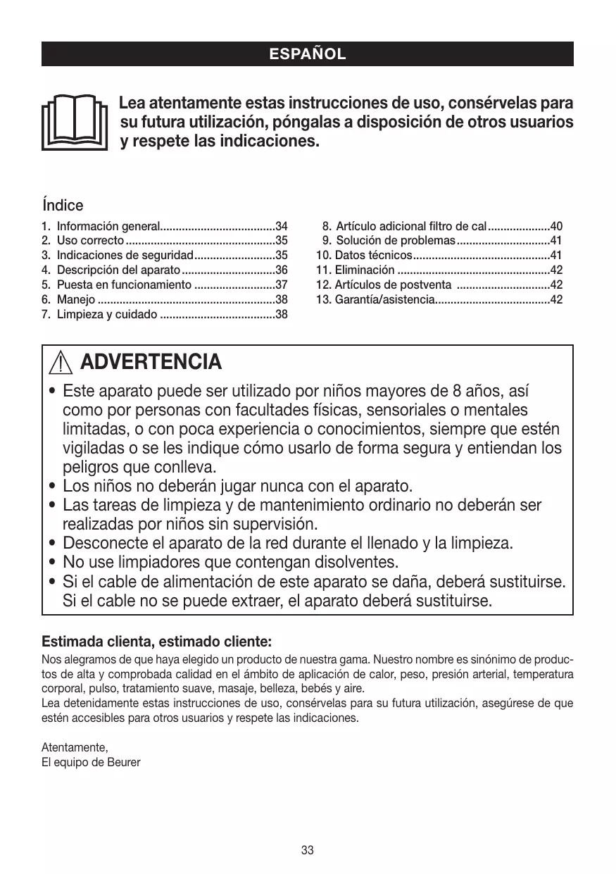 Descarga las instrucciones para tu Humidificador en formato PDF gratis! Encuentra tus instrucciones LB45 - BEURER y toma tu dispositivo electrónico nuevamente en la mano. En esta página están publicados todos los documentos necesarios para el uso de su dispositivo. LB45 de la marca BEURER.