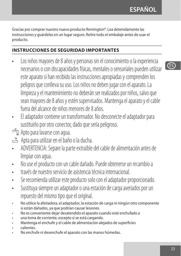 | Compatibilidades | Compatible con los productos de cuidado de la piel Remington |