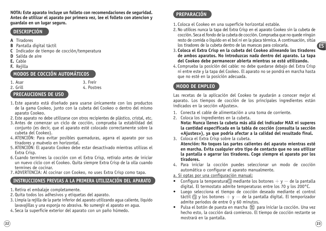 | Limpieza | Piezas desmontables aptas para lavavajillas |