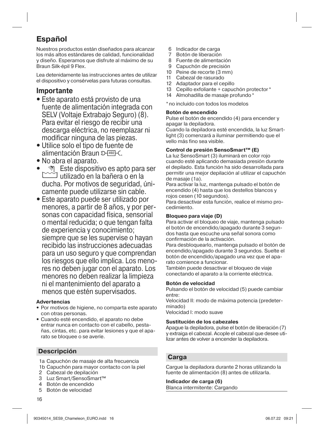 Español Nuestros productos están diseñados para alcanzar los más altos estándares de calidad, funcionalidad y diseño. Esperamos que disfrute al máximo de su Braun Silk·épil 9 Flex. Lea detenidamente las instrucciones antes de utilizar el dispositivo y consérvelas para futuras consultas.