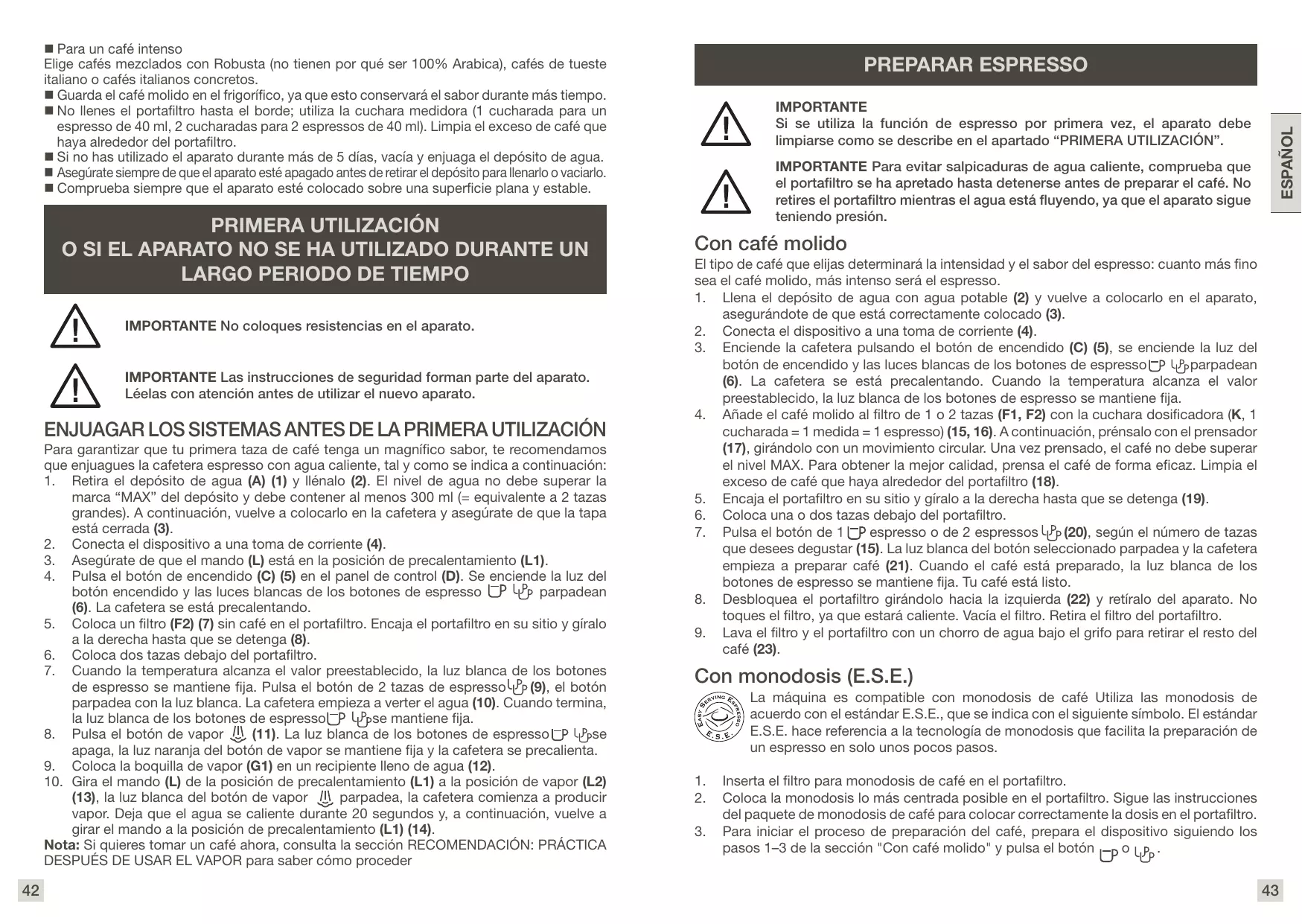 | Compatibilidades | Café molido y cápsulas E.S.E. |