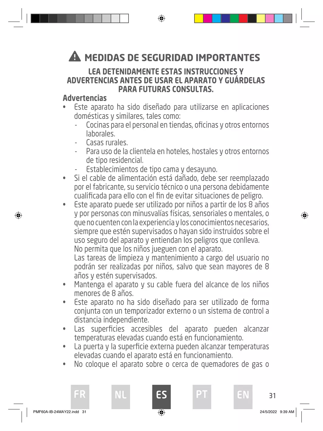 PMF60A-IB-24MAY22.indd 2 En ce qui concerne les informations détaillées sur la manière de nettoyer les surfaces en contact avec les aliments, référez-vous dans la section “NETTOYAGE ET ENTRETIEN” en page 12. Attention, surface très chaude Les surfaces sont susceptibles de devenir chaudes au cours de l’utilisation.