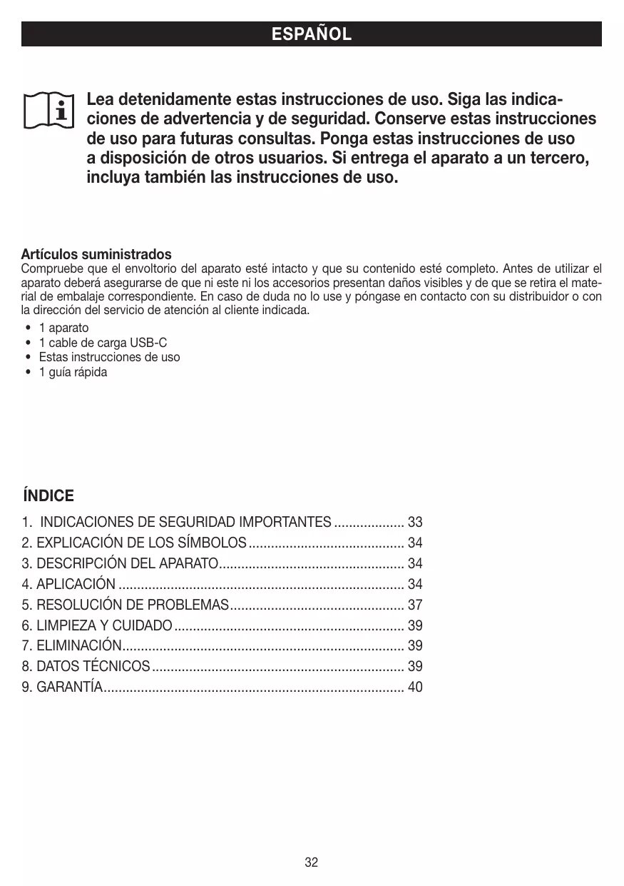 | Información general | Garantía de 3 años, manual de usuario incluido |
