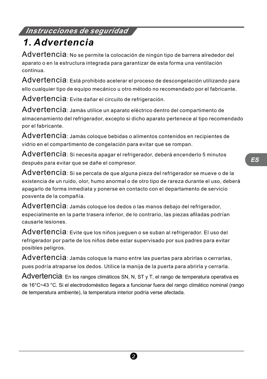 | Mantenimiento y limpieza | Limpieza regular de las superficies interiores y exteriores, descongelación si es necesario |
