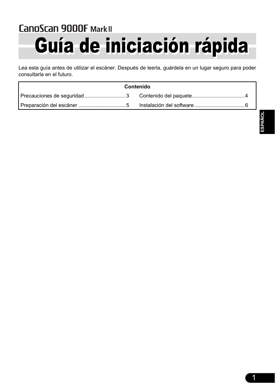 Guía de iniciación rápida Lea esta guía antes de utilizar el escáner. Después de leerla, guárdela en un lugar seguro para poder consultarla en el futuro.