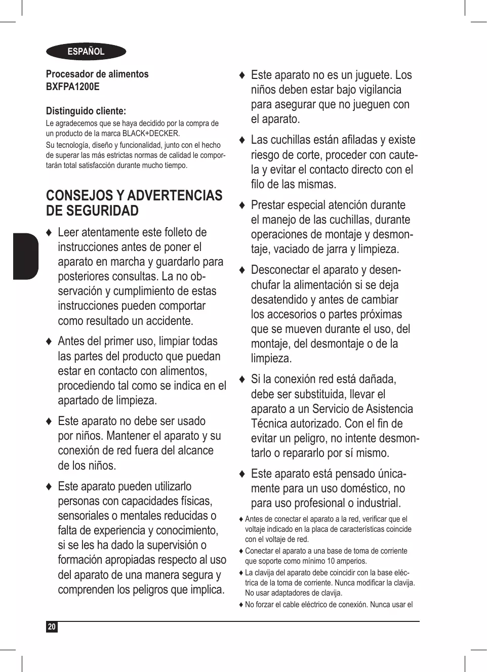 BXFPA1200E - Preparateurculinaire BLACK & DECKER - Manual de uso y guía de instrucciones gratis