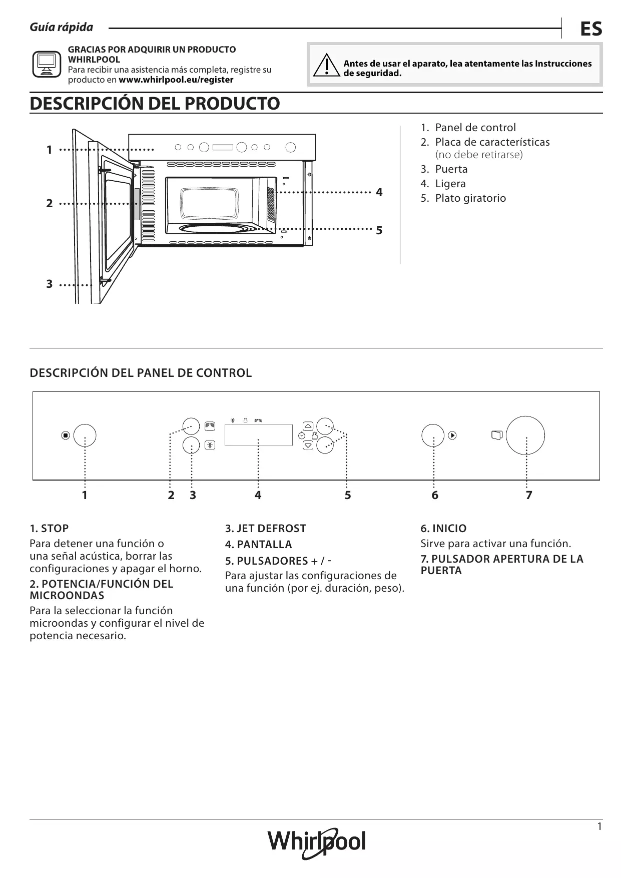 MBNA9Y00B - Four_a_micro_onde WHIRLPOOL - Manual de uso y guía de instrucciones gratis