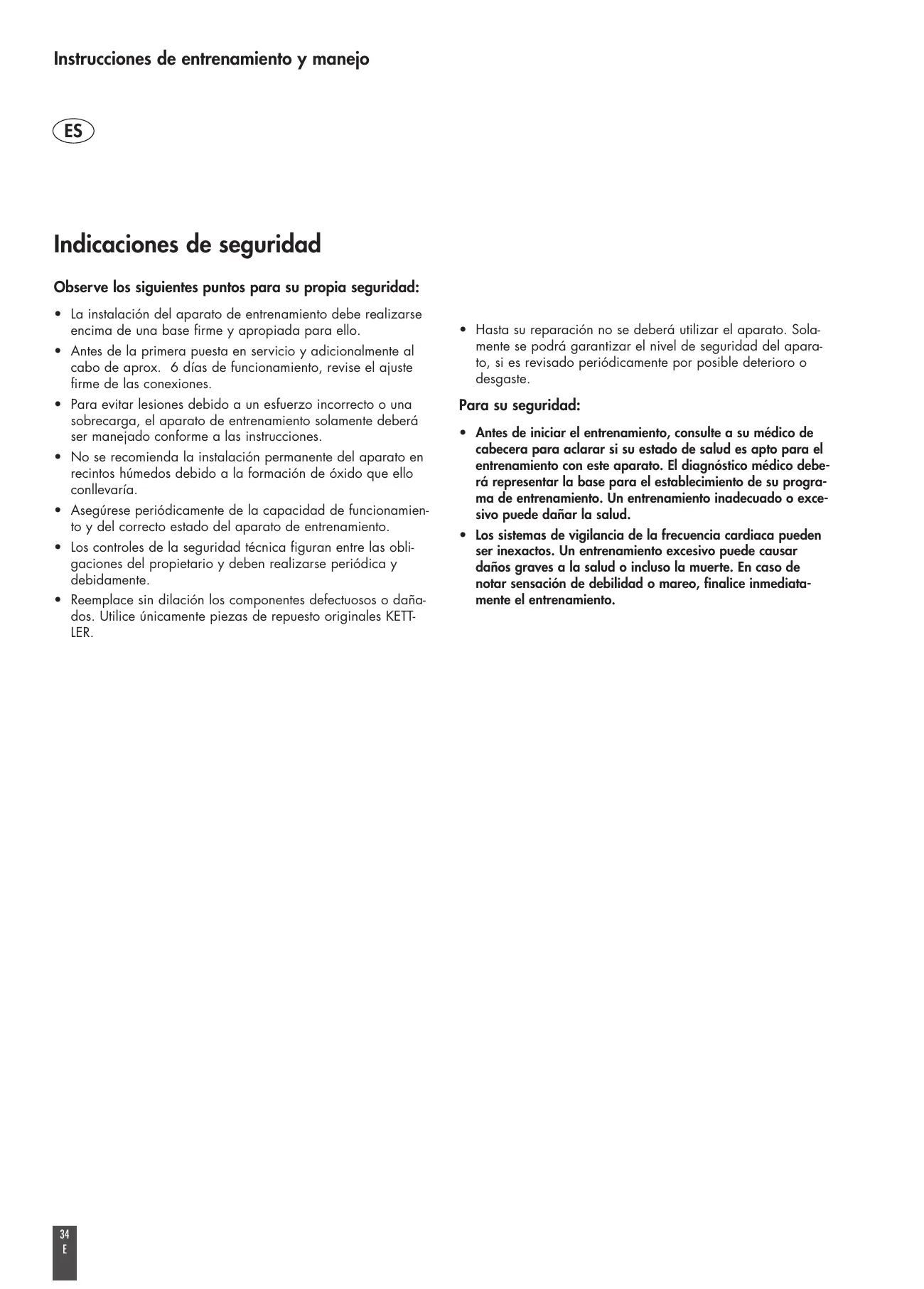 • Asegúrese periódicamente de la capacidad de funcionamiento y del correcto estado del aparato de entrenamiento.
