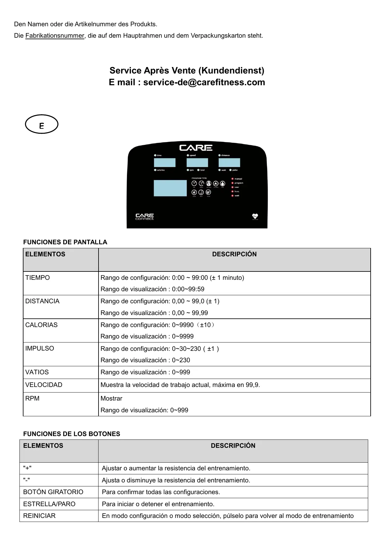 Descarga las instrucciones para tu Bicicleta estática en formato PDF gratis! Encuentra tus instrucciones PERFORMER LED auto-alimenté - CARE - ergomètre connecté - CARE FITNESS y toma tu dispositivo electrónico nuevamente en la mano. En esta página están publicados todos los documentos necesarios para el uso de su dispositivo. PERFORMER LED auto-alimenté - CARE - ergomètre connecté de la marca CARE FITNESS.