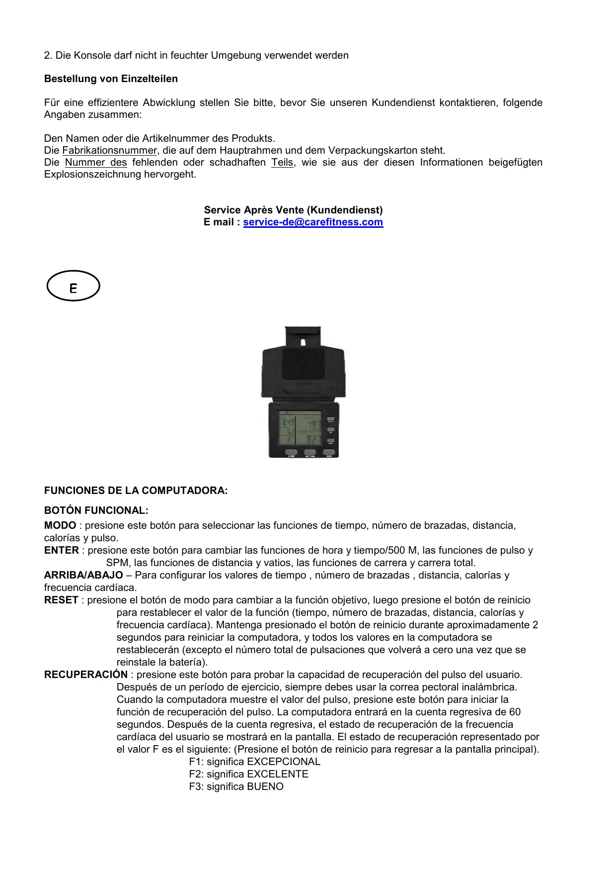 Service Après Vente (Kundendienst) E mail : service-de@carefitness.com