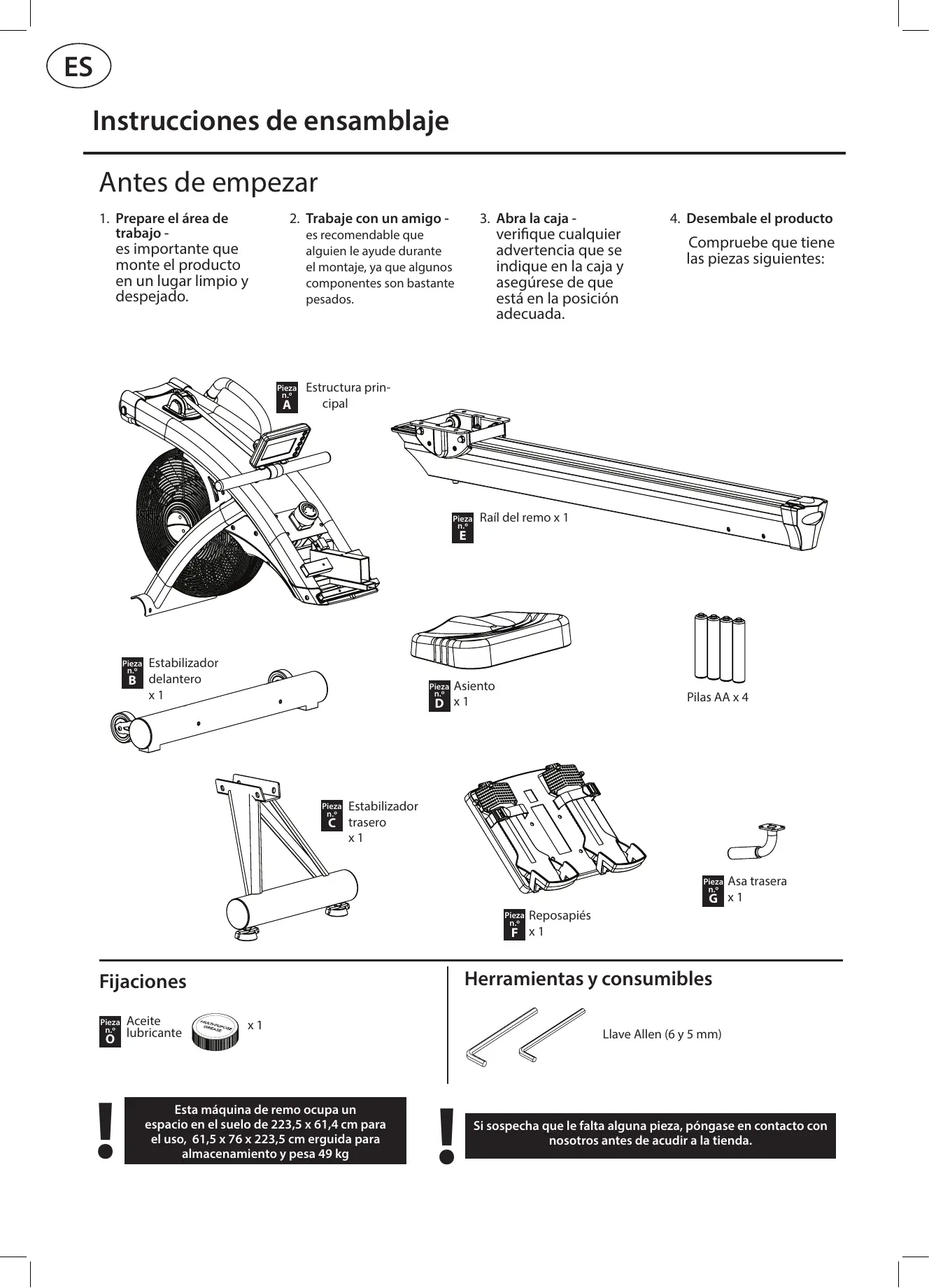 Correo electrónico: service-es@carefitness.com • Tire de la empuñadura en línea recta con ambas manos. • No suelte la empuñadura para evitar que golpee la máquina. • No reme con una sola mano, hacer un mal uso de la correa puede resultar en lesión. • No retuerza la correa ni tire de ella de lado a lado. • Mantenga la ropa alejada del carro del asiento. • Tenga en cuenta que el asiento se desplazará hacia delante por el raíl cuando no esté en uso.