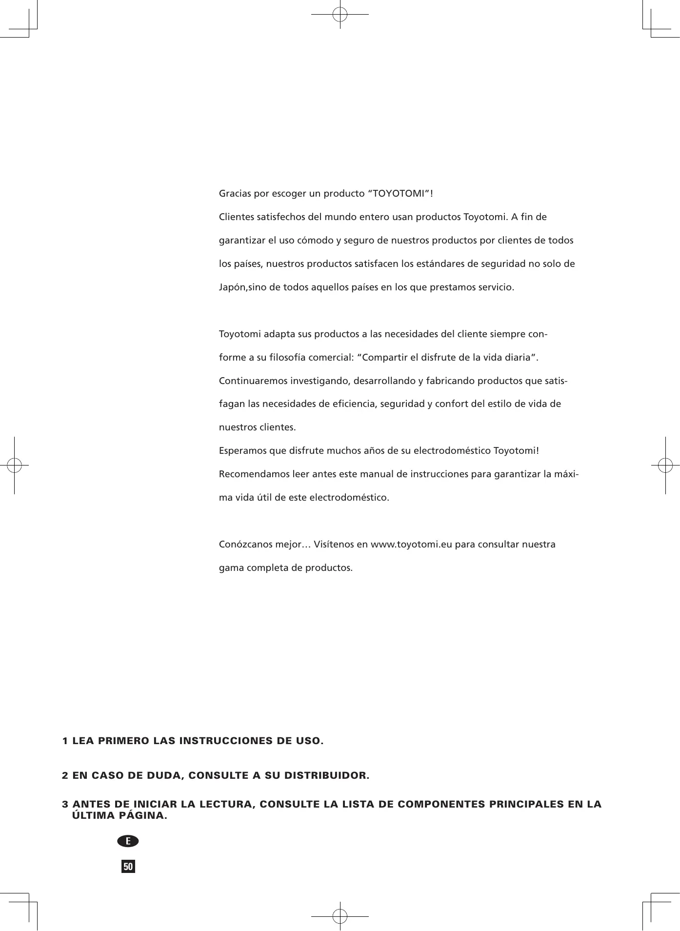 Nous espérons que vous apprécierez votre appareil “Toyotomi” pour les années à venir! Pour assurer une durée de vie maximale pour cet appareil, nous vous invitons d’abord à lire ce manuel d’instruction.