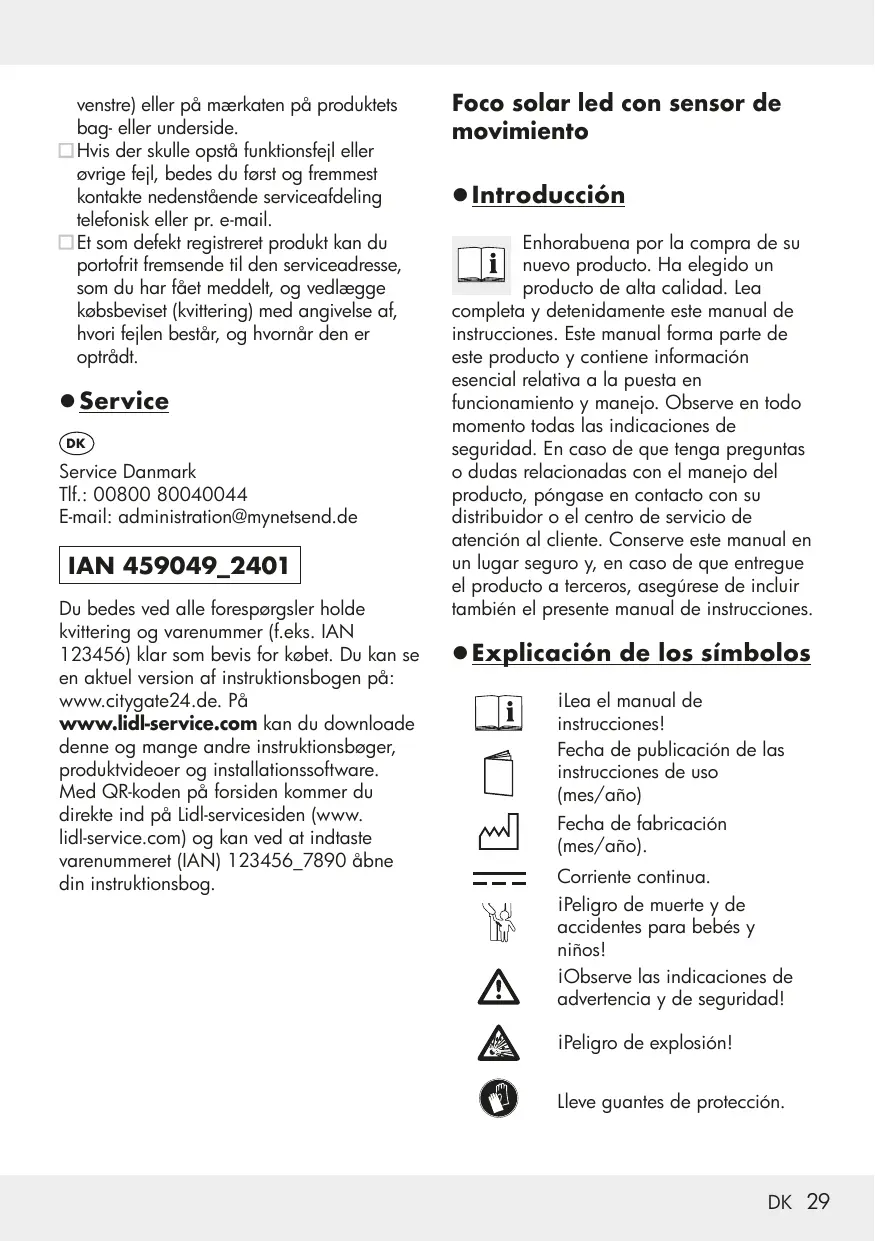 MANUAL DE USUARIO home Projecteur solaire à LED avec détecteur de mouvement LIVARNO