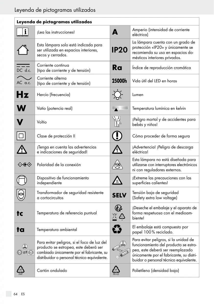 No deje la lámpara ni el material de embalaje sin supervisión. Las láminas y bolsas de plástico, las piezas de plástico, etc. pueden convertirse en juguetes peligrosos para los niños.