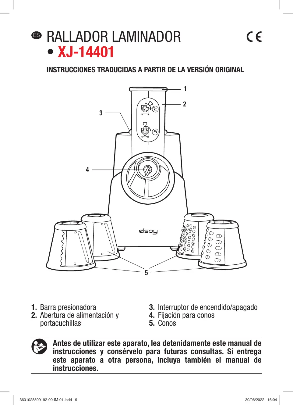 XJ-14401 - Rallador electrico ELSAY - Manual de uso y guía de instrucciones gratis