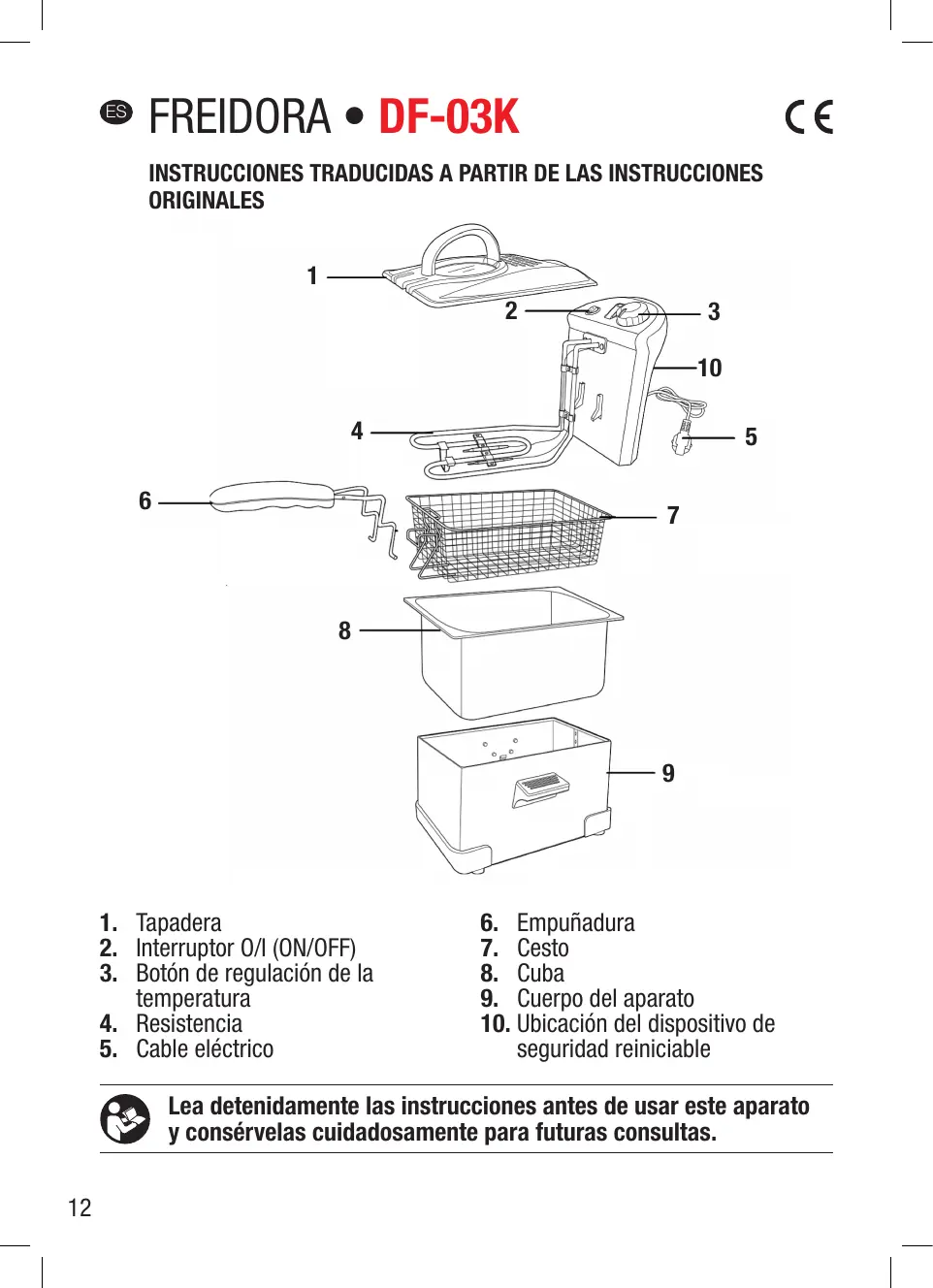 Antes de utiliser este aparato, lea detenidamente este manual de instrucciones y conservelo para futuras consultas.