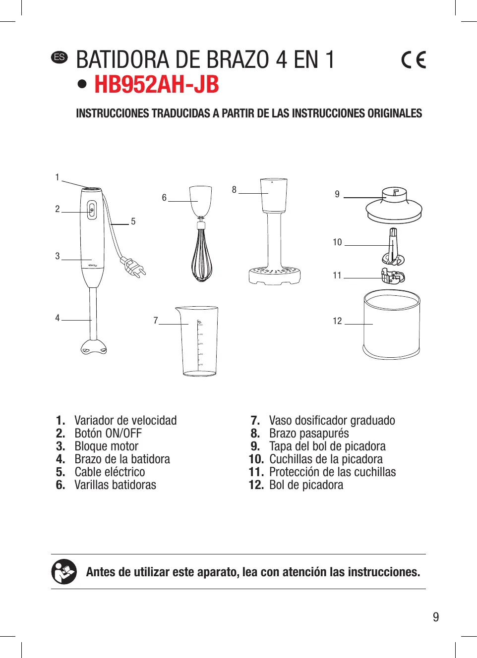 plongeant 4 en 1 - HB952AH-JB - Mezclador ELSAY - Manual de uso y guía de instrucciones gratis