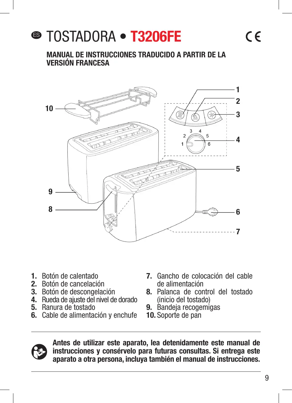 T3206FE - Tostadora ELSAY - Manual de uso y guía de instrucciones gratis