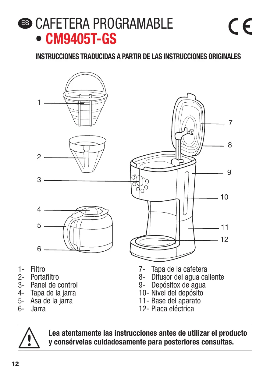 Descarga las instrucciones para tu Cafetera en formato PDF gratis! Encuentra tus instrucciones CM9405T-GS - ELSAY y toma tu dispositivo electrónico nuevamente en la mano. En esta página están publicados todos los documentos necesarios para el uso de su dispositivo. CM9405T-GS de la marca ELSAY.