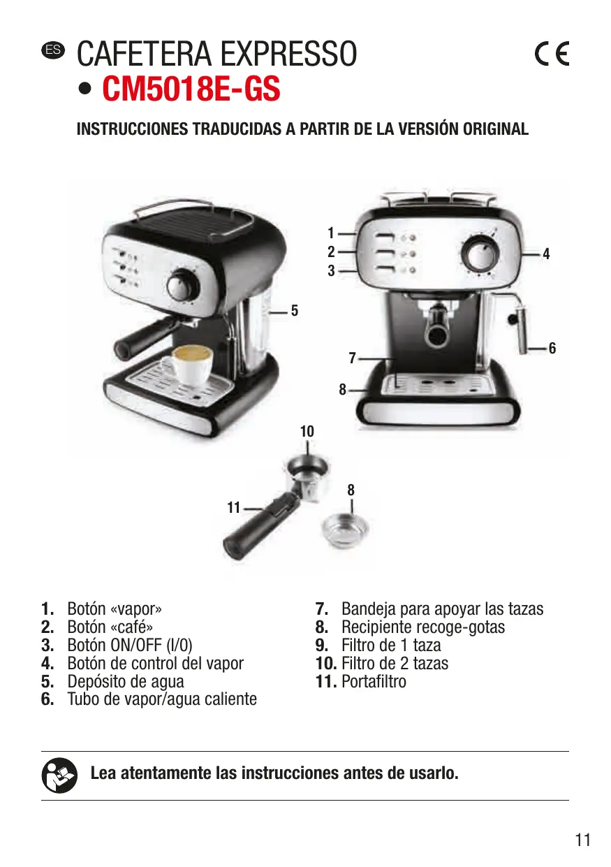 Encuentra gratis el manual del aparato expresso - CM5018E-GS ELSAY en formato PDF.