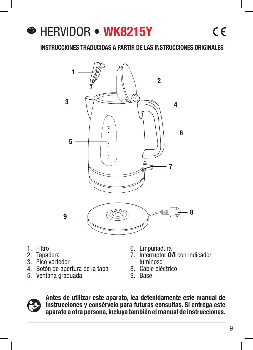 Descarga las instrucciones para tu Pava en formato PDF gratis! Encuentra tus instrucciones WK8215Y - ELSAY y toma tu dispositivo electrónico nuevamente en la mano. En esta página están publicados todos los documentos necesarios para el uso de su dispositivo. WK8215Y de la marca ELSAY.