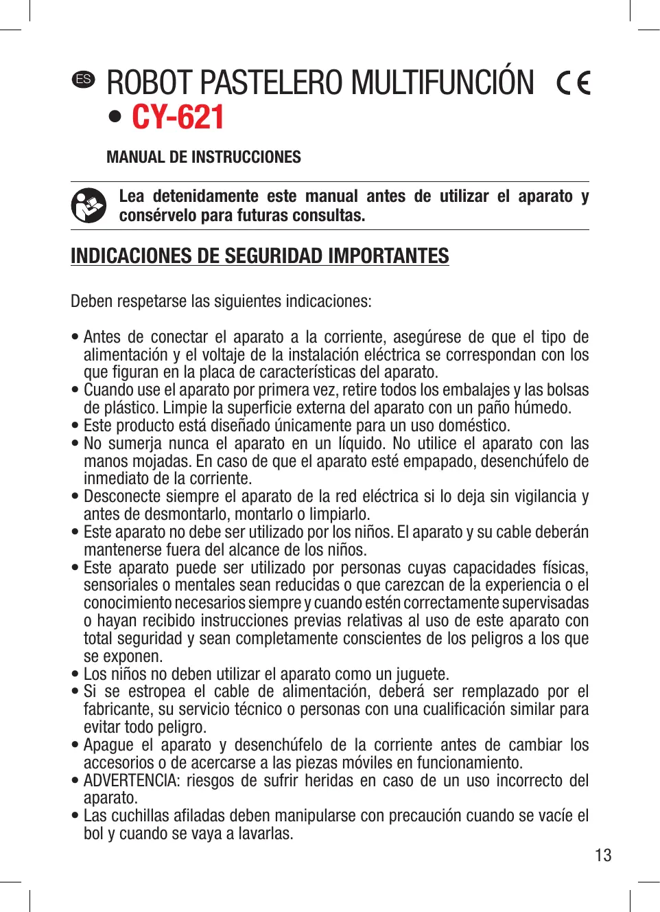 CY-621 - Robot patissier multifonction ELSAY - Manual de uso y guía de instrucciones gratis