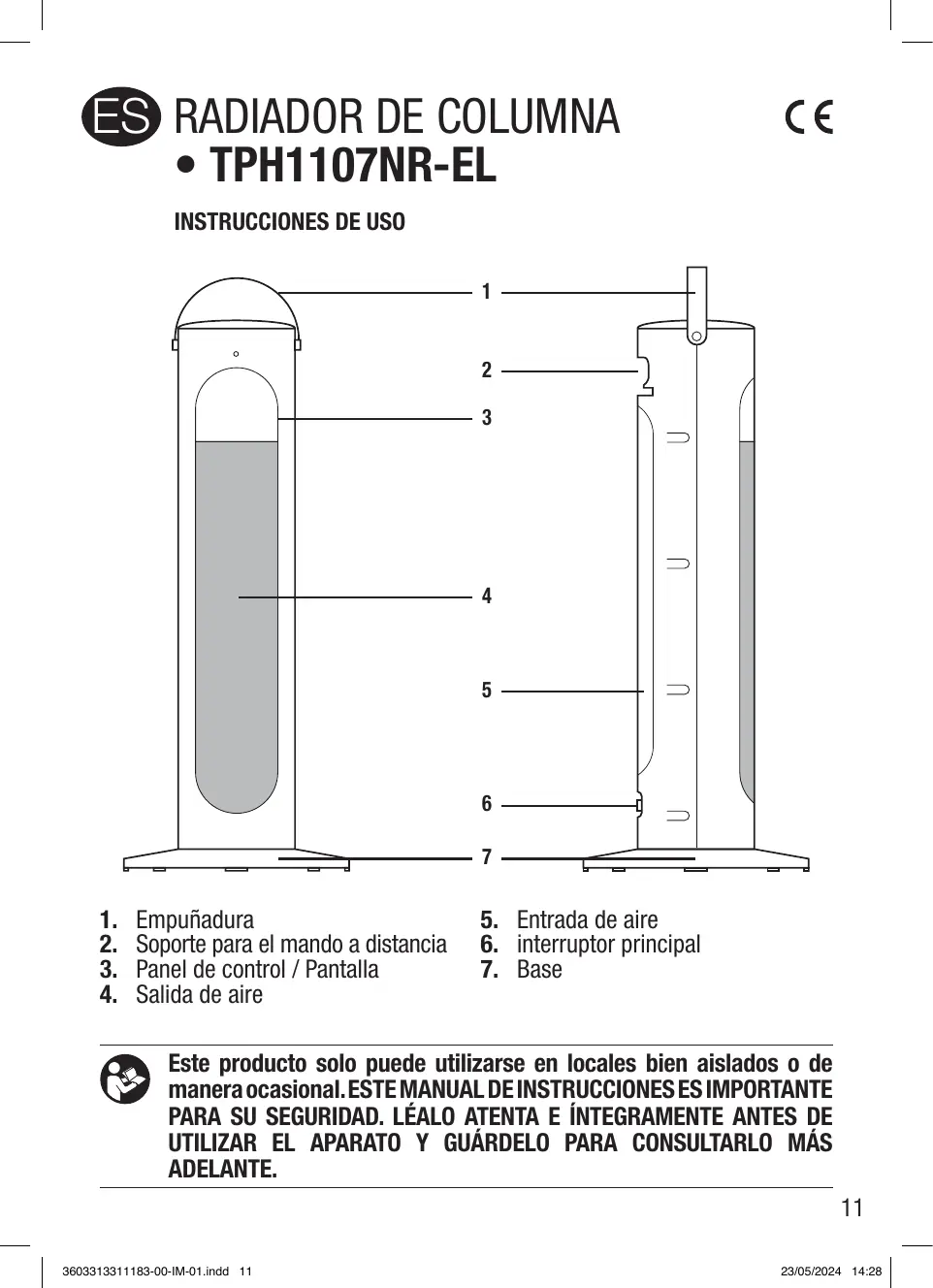 MANUAL DE USUARIO Tour Soufflante Céramique - 2000W - TPH1107NR-EL ELSAY
