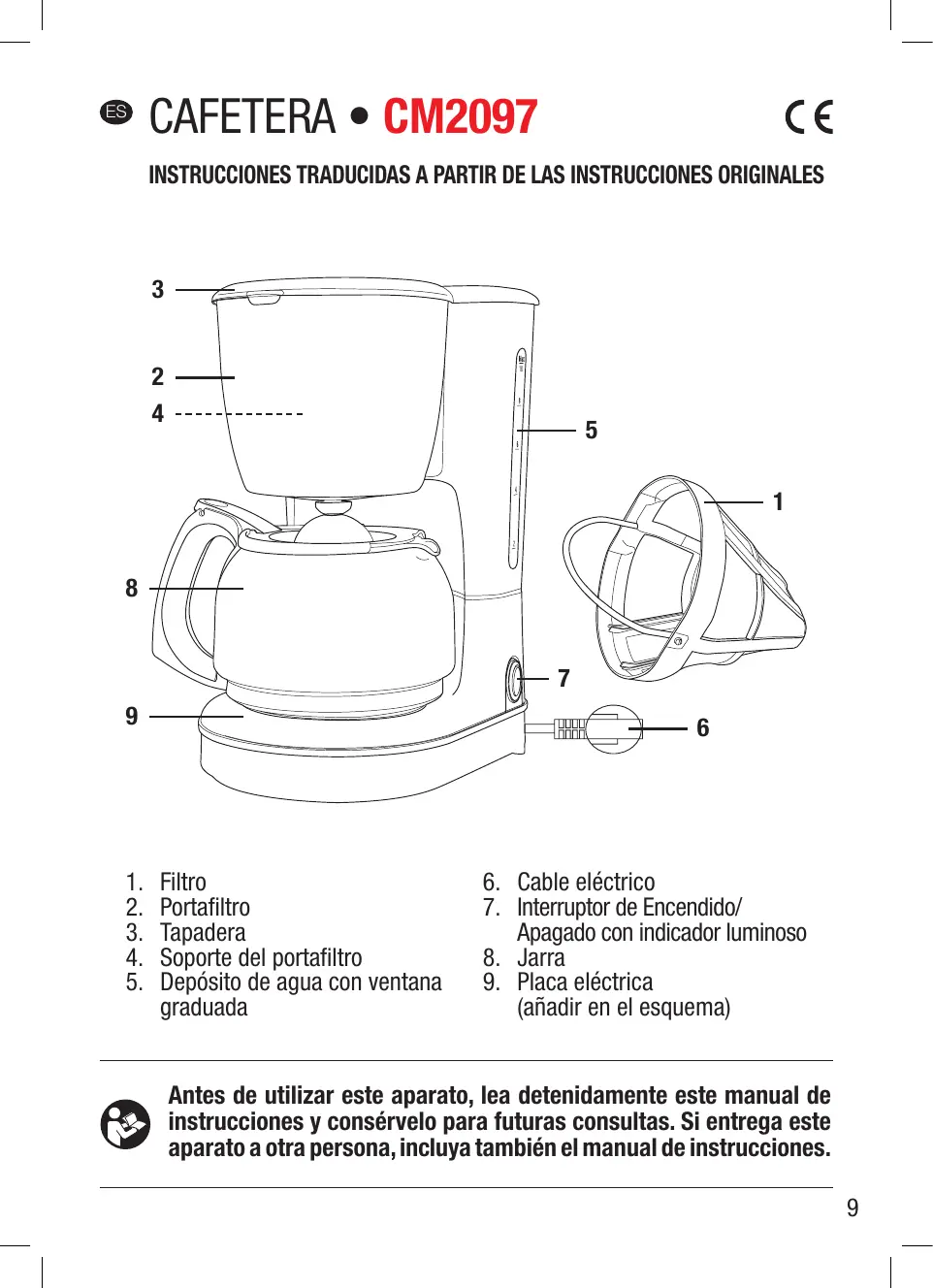 12 tasses - CM2097 - Cafetera ELSAY - Manual de uso y guía de instrucciones gratis