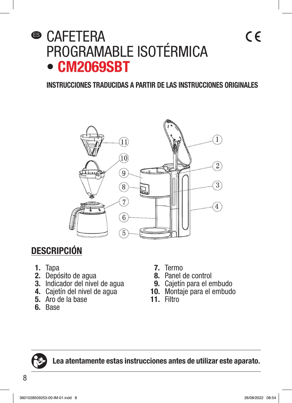 10 tasses - CM2069SBT - Cafetera ELSAY - Manual de uso y guía de instrucciones gratis