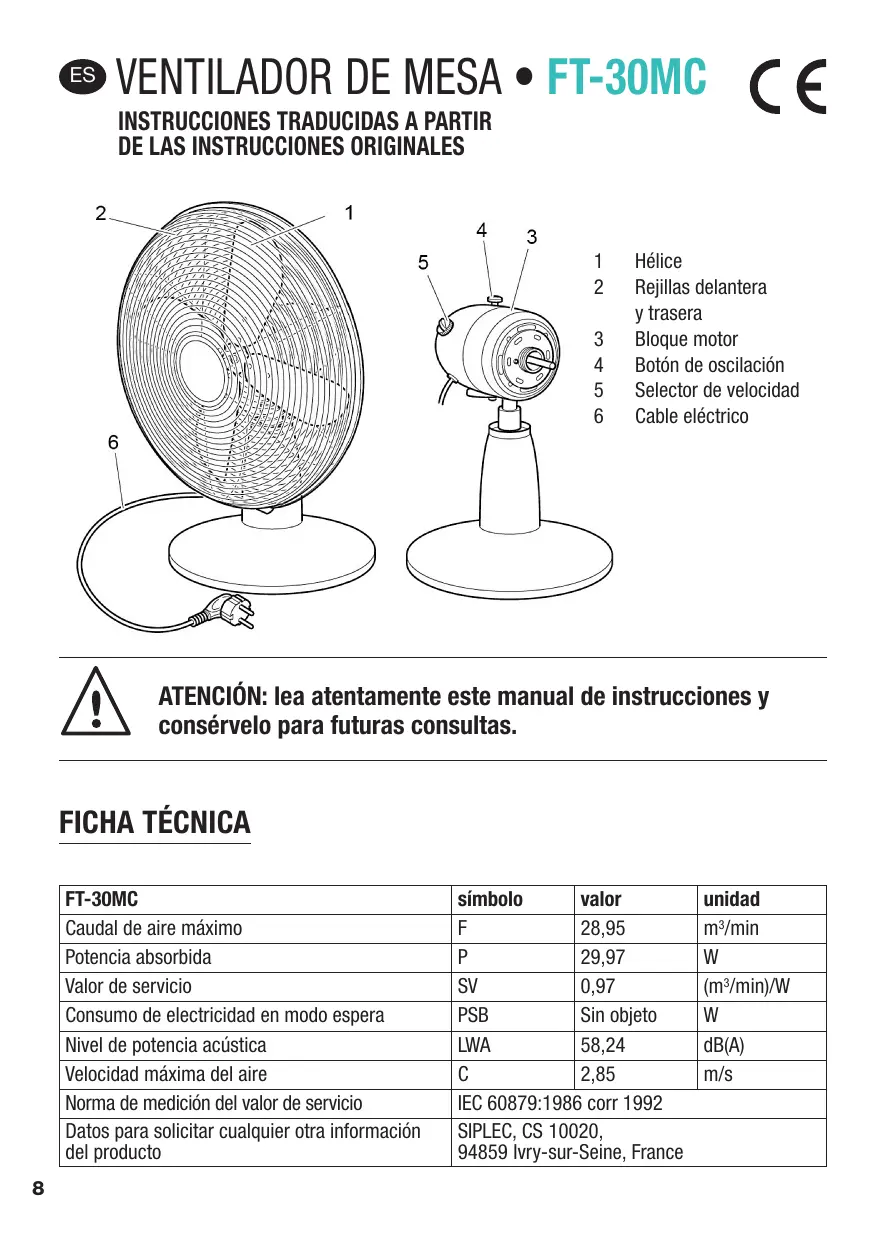 FT-30MC - Admirador ELSAY - Manual de uso y guía de instrucciones gratis