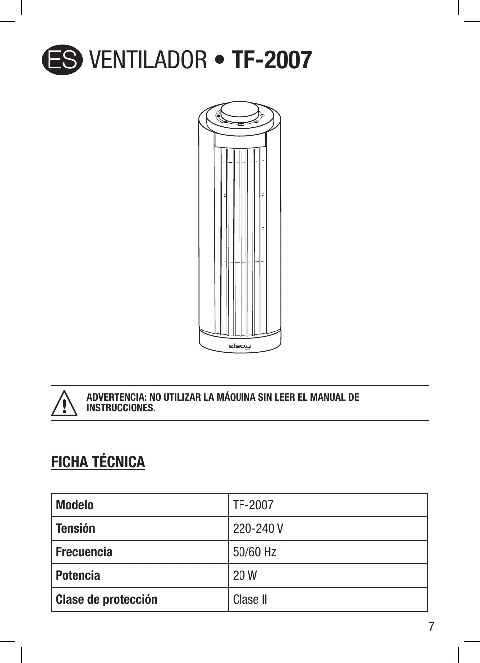 TF-2007 - Admirador ELSAY - Manual de uso y guía de instrucciones gratis