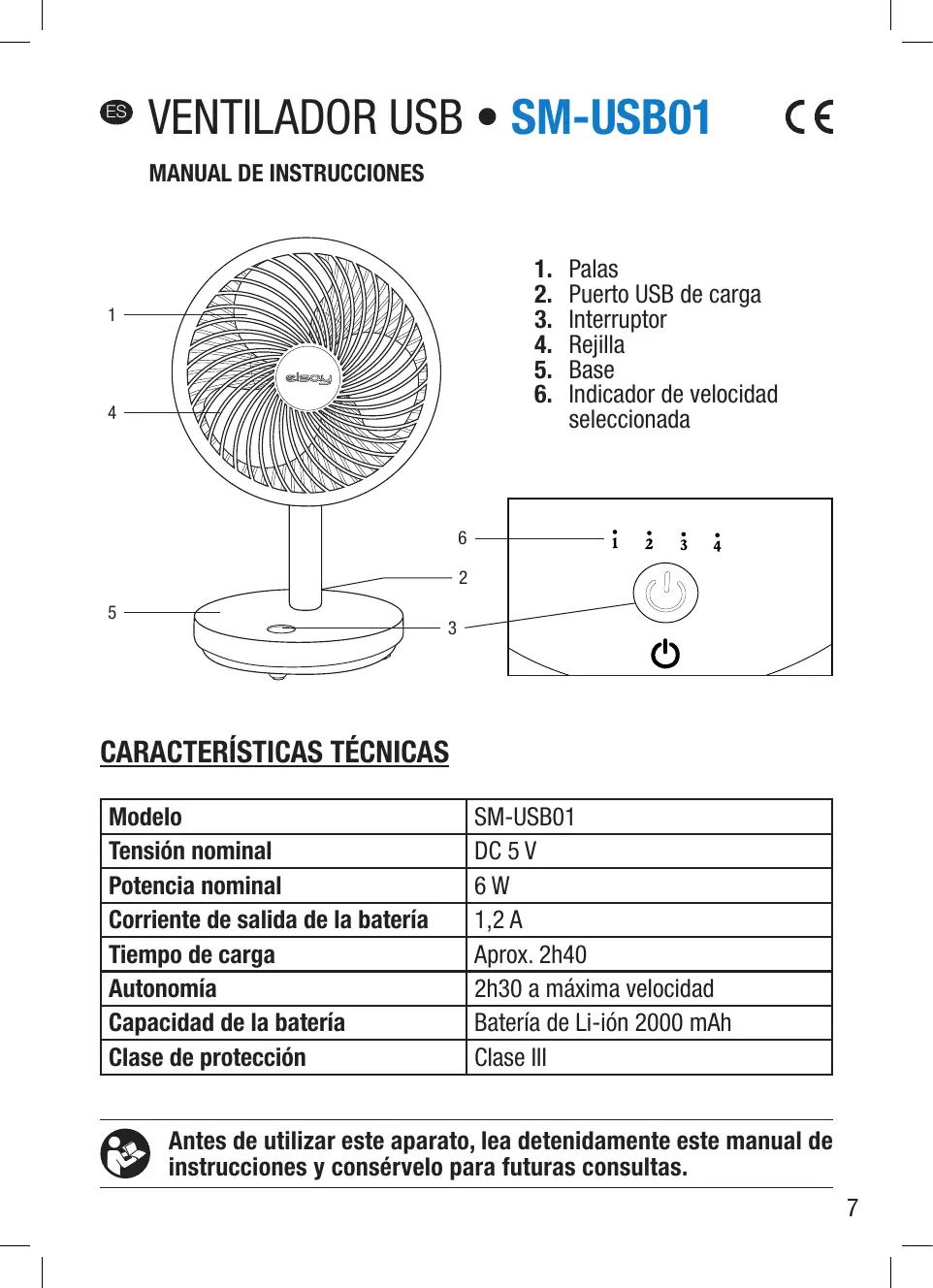 SM-USB01 - Admirador ELSAY - Manual de uso y guía de instrucciones gratis