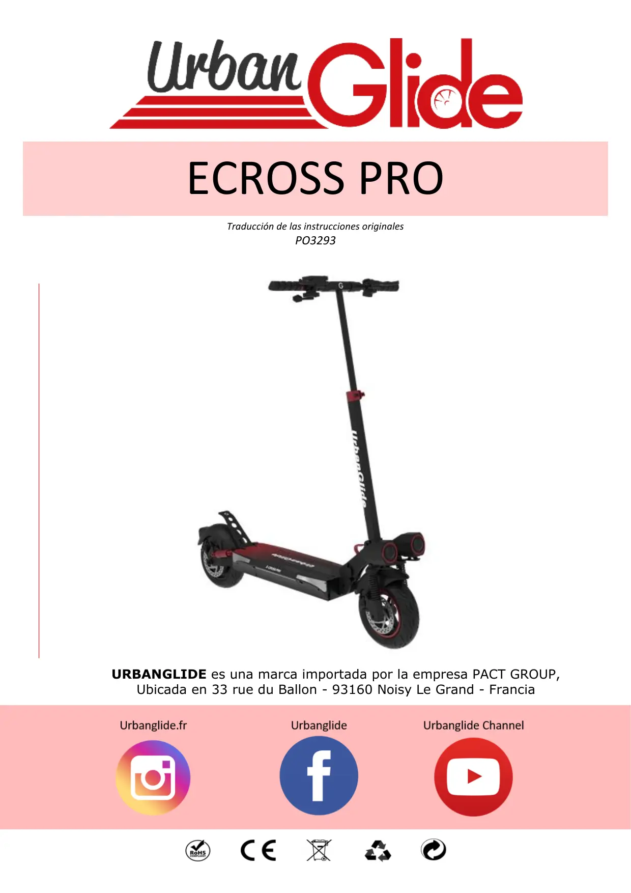 eCROSS PRO PO3293 - Patinete electrico URBANGLIDE - Manual de uso y guía de instrucciones gratis