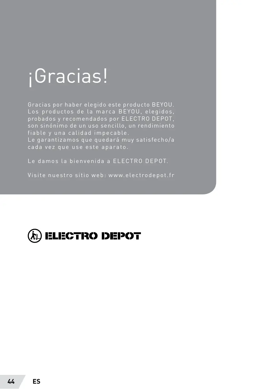 Gracias por habereggido este producto BEYOU. Los productos de lamarca BEYOU, elegidos, probados y recomendados por ELECTRO DEPOT, son sinonimo de un uso sencillo, un rendimiento fiable y una calidad impeccable.