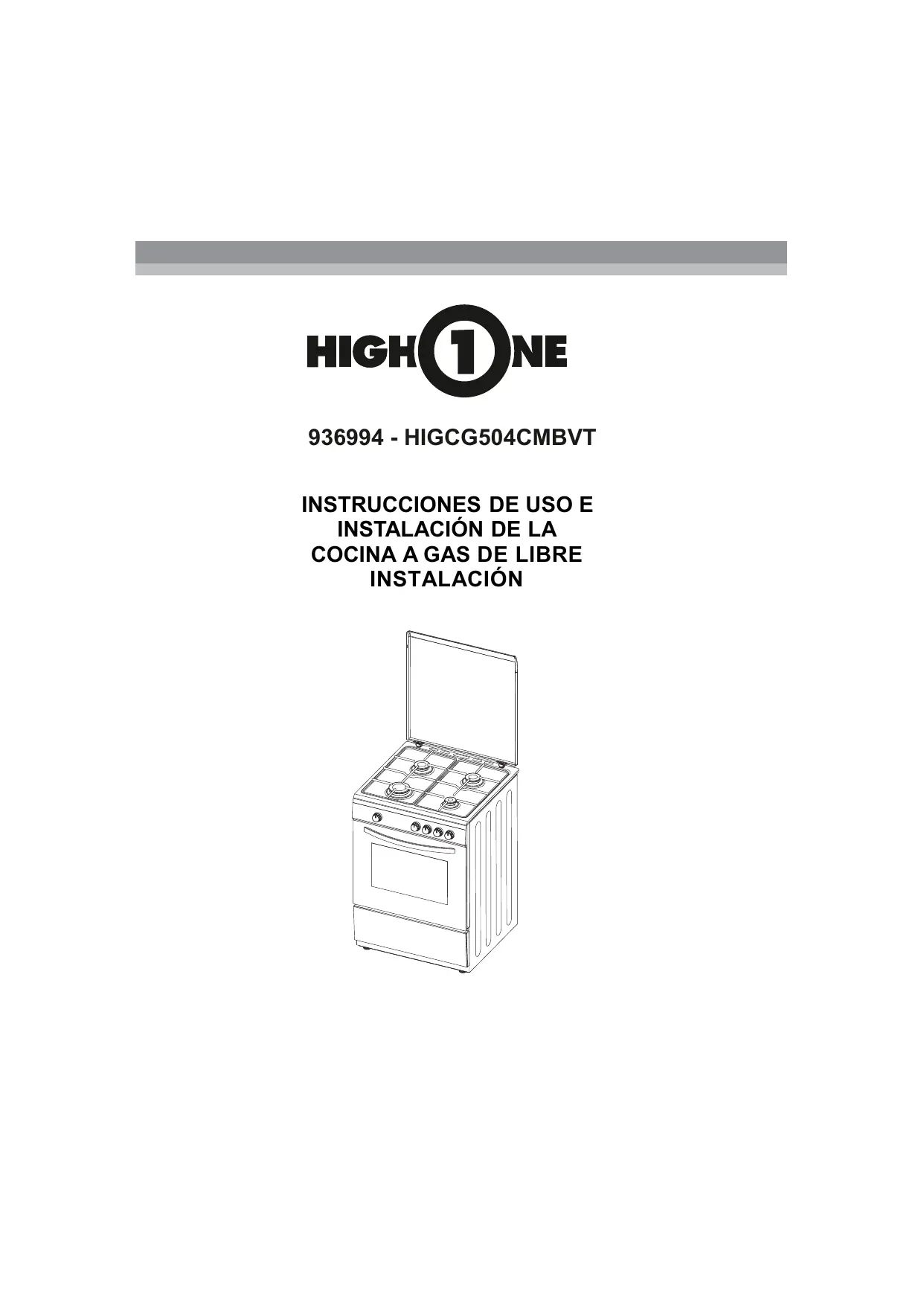 HIG CG 50 4CM BVT - Cuisiniere gaz HIGH ONE - Manual de uso y guía de instrucciones gratis