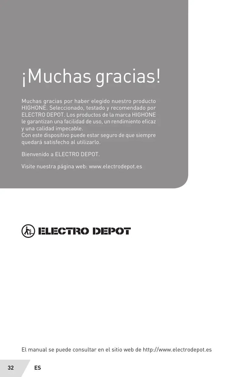 Muchas gratias por haber elegido nuestro producto HIGHONE. SeLECTIONADO, testado y recomendado por ELECTRO DEPOT. Los produits de lamarca HIGHONE le garantizan una calidad de uso, un rendimiento eficaz y una calidad impecable.