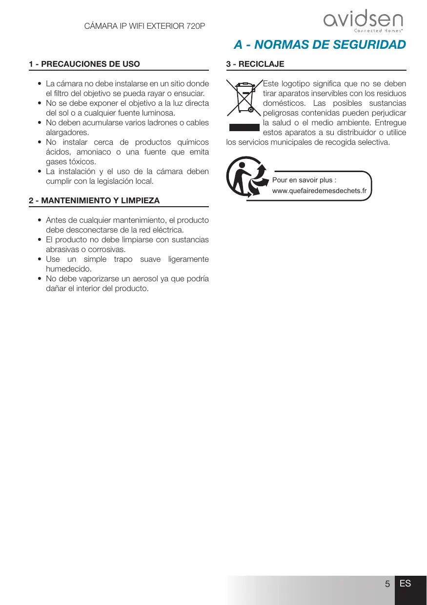 MANUAL DE USUARIO FIXE EXTERIEURE WIFI HD AVIDSEN