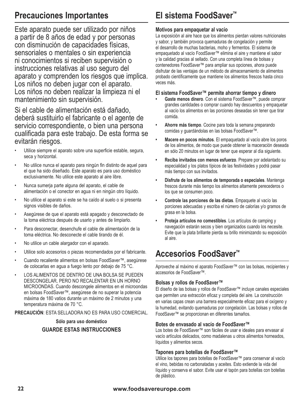 MANUAL DE USUARIO FFS013X FOOD SAVER