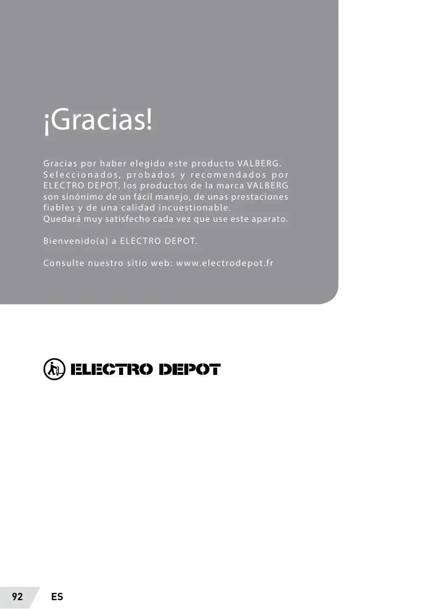 Gracias por haber elegido este producto VALBERG. Seleccionados, probados y recomendados por ELECTRO DEPOT, los productos de la marca VALBERG son sinénimo de un fâcil manejo, de unas prestaciones fiables y de una calidad incuestionable.