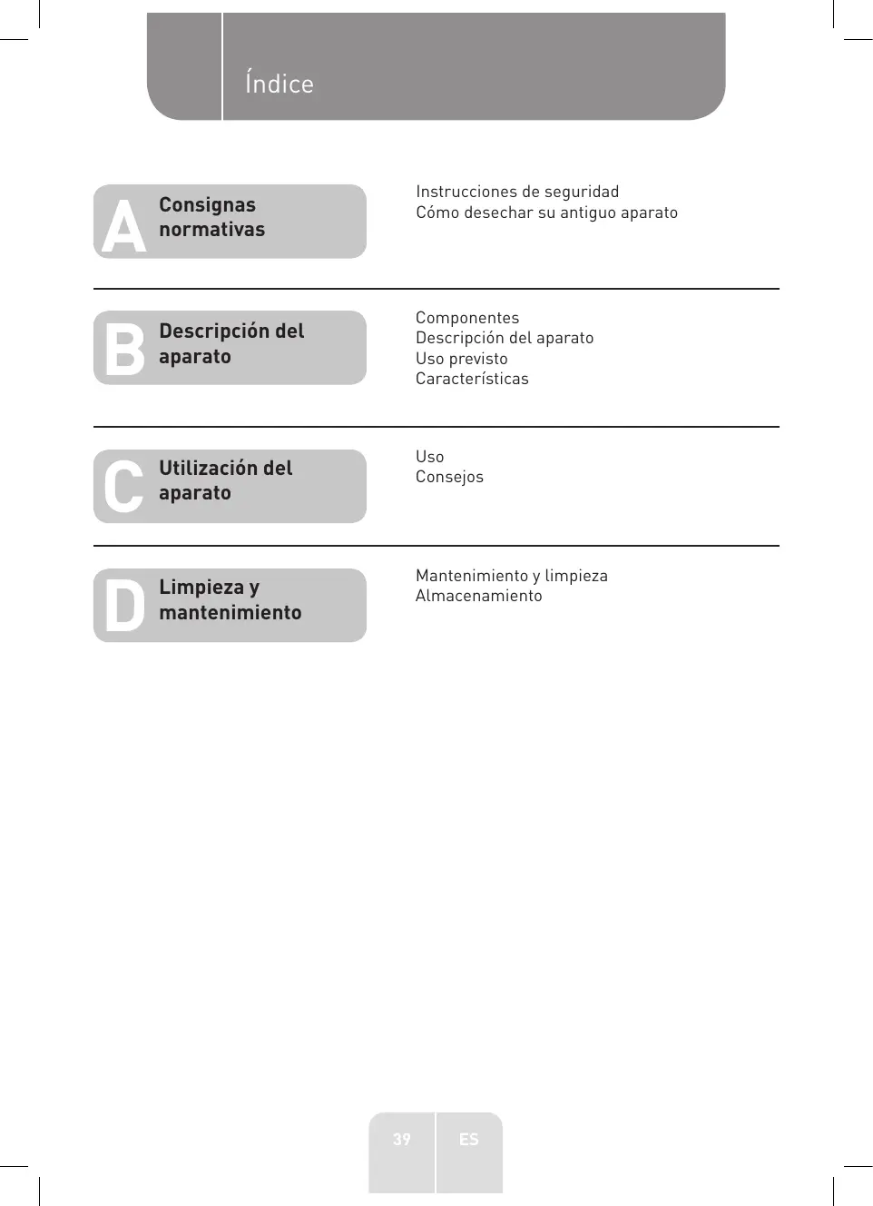 - Utilice este aparato solo para los fines previstos. No se haprevisto el uso comercial del aparato. Este aparato se hadisenado exclusivamente para un uso domestico e interior.