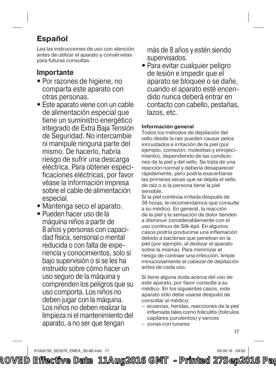 Descarga las instrucciones para tu Depilador en formato PDF gratis! Encuentra tus instrucciones SE3 321 - BRAUN y toma tu dispositivo electrónico nuevamente en la mano. En esta página están publicados todos los documentos necesarios para el uso de su dispositivo. SE3 321 de la marca BRAUN.